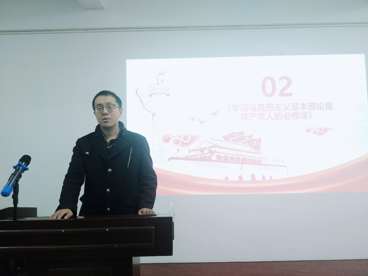 之后,宣传委员郭龙飞同志带领大家一起学习《学习马克思主义基本理论是共产党人的必修课》,他从背景介绍、主要内容、重要意义三个方面深刻地展示了学好基本科学原理和科学精神的重要性。紧接着,支部同志一起诵读习近平总书记关于学习马克思主义经典的重要论述。与会党员纷纷表示要加强学习马克思主义有关知识理论,进一步提高思想觉悟水平,努力做到读经典、悟经典。