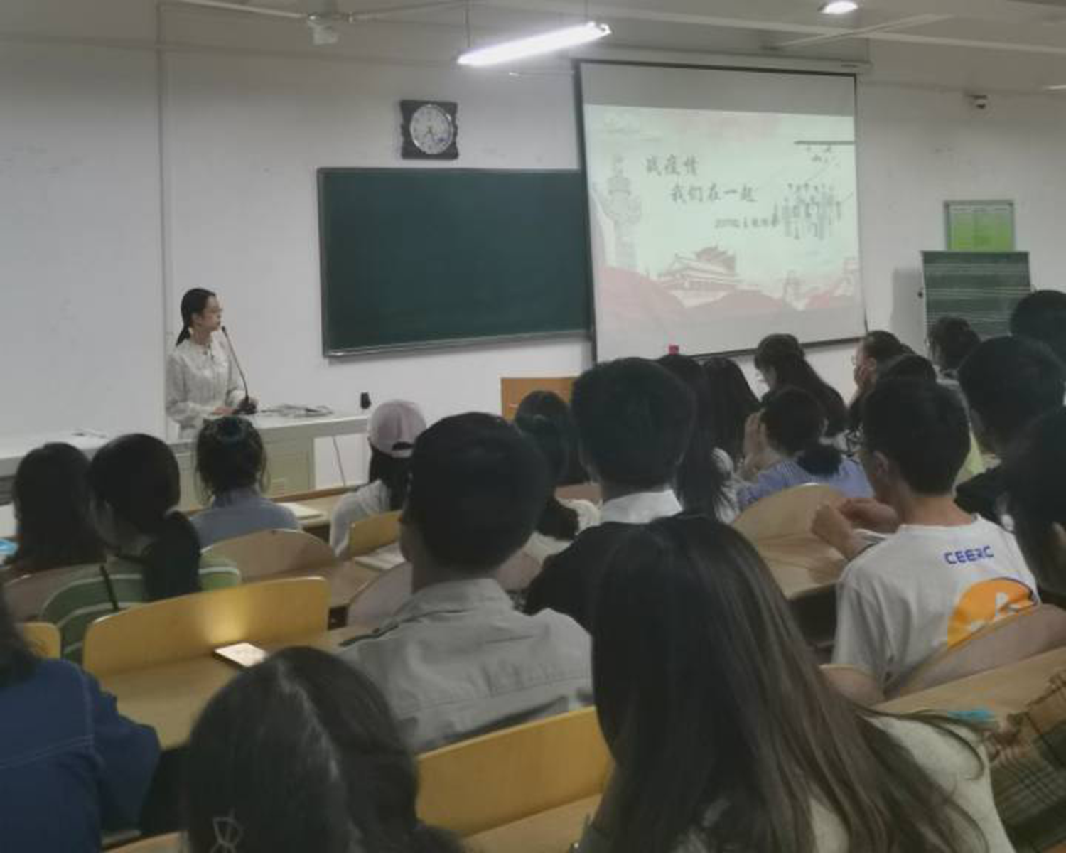 2019级本科生在文津楼1319教室开展了“抗疫情,我们在一起”主题班会,2019级全体本科生参加了会议,会议由爱爱视频