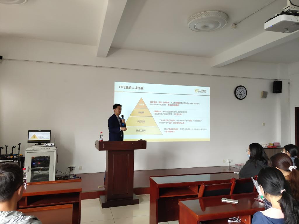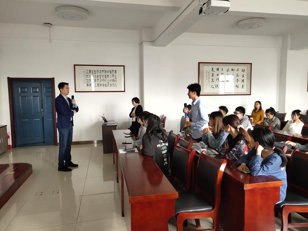 首先,君略科技咨询有限公司联合创始人、副总经理李响向在场的同学们详细介绍了公司的基本情况、主要业务、公司优势、岗位需求以及发展前景等,并着重介绍了近几年公司的典型咨询案例。然后,数名在职员工向大家分享了公司环境以及工作感受,鼓励大家积极尝试。同学们也结合自身情况提出一系列问题,都得到了针对性的回答。最后,招聘人员收取了同学们的简历并进行了现场面试。