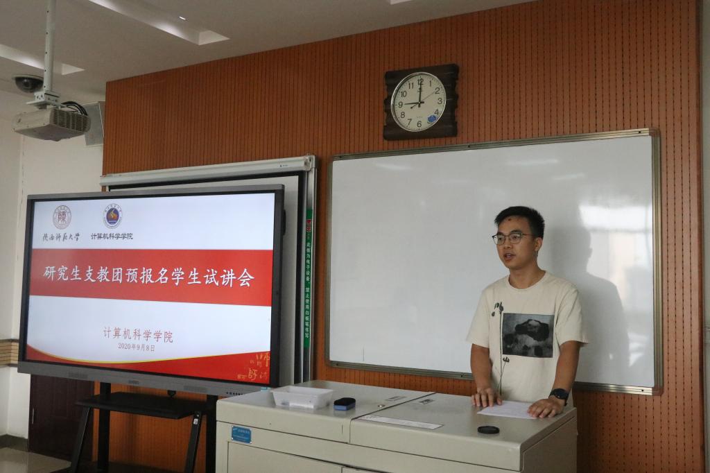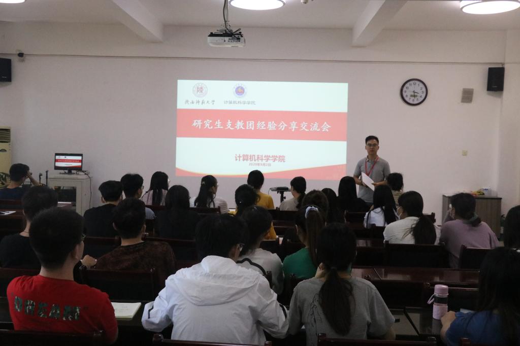 2021届研究生支教团预报名学生共计30余人进行了研究生支教团竞聘经验分享,分享会由2021届本科生辅导员陈应权主持。在分享过程中,任仰等4人分别从研究生支教团的起源及其意义、前期报名材料的准备、试讲题目的选取、综合素质面试注意事项等同学们关心的问题进行了讲解,还对同学们的问题进行了解答。