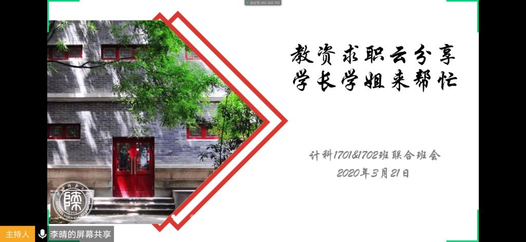 计算机科学与技术专业1701班、1702班联合开展了“教资求职云分享 学长学姐来帮忙”主题云班会。本次班会专门邀请了爱爱视频