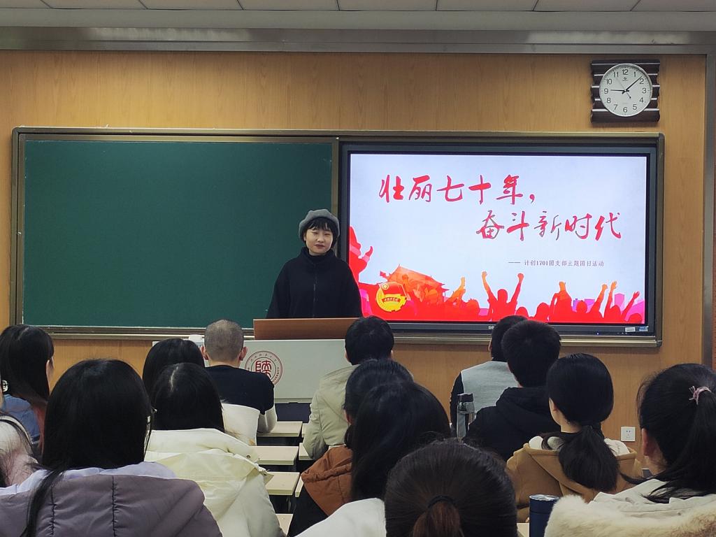计创1701班于12月23日下午16:30在文渊楼3211举行“壮丽七十年,奋斗新时代”团日活动。团日活动由团支书林雨婷同学主持,计创1701班全体团员参加了本次活动。
