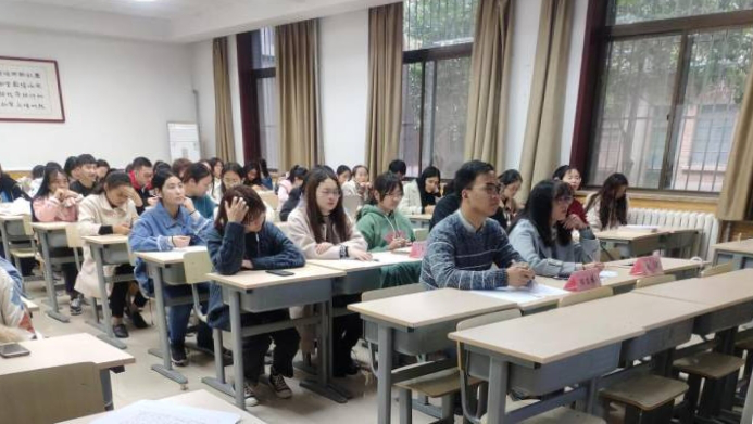 2017级本科生辅导员陈应权、2018级本科生辅导员安琪出席比赛,本次比赛评委由教师评委和大众评委组成,2018级、2019级部分公费师范生到场观摩比赛。