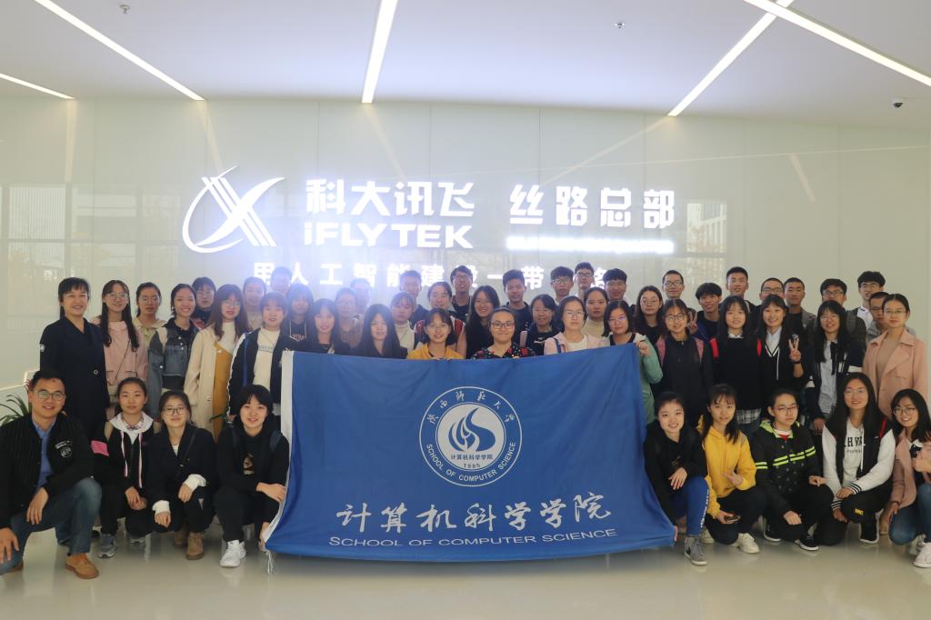 党委副书记袁冰,辅导员毛庆、陈应权、安琪、崔瑜璠带领2018级、2019级48名本科生前往科大讯飞公司进行参观学习。