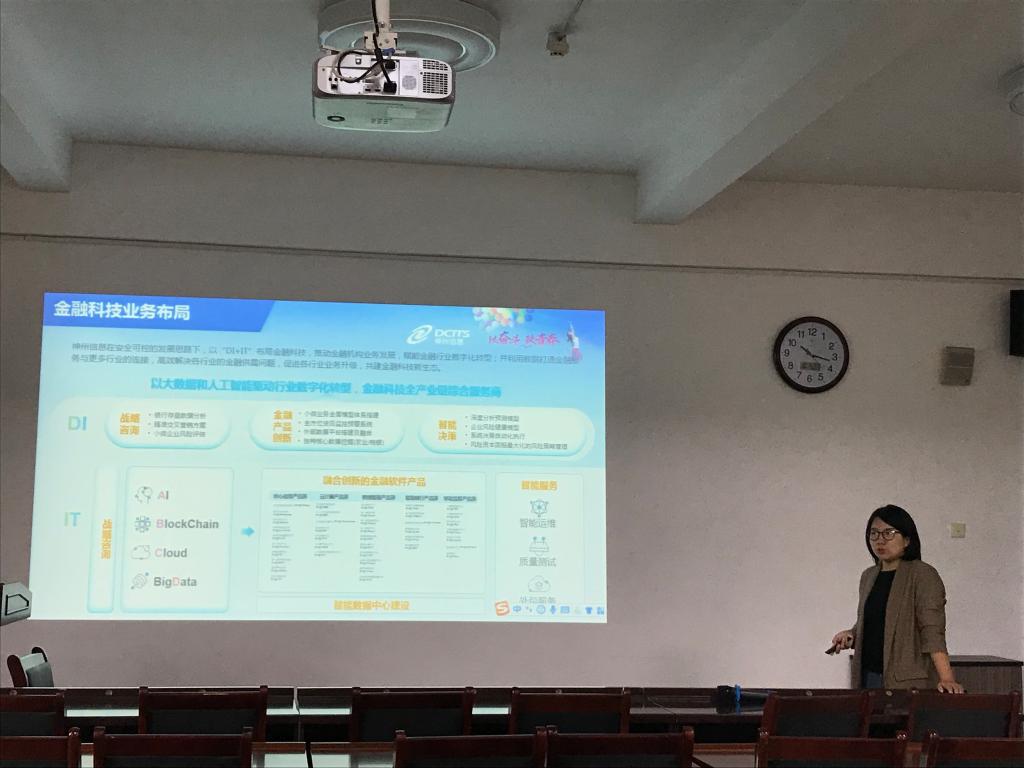 首先,神州信息校招团队向在场的同学们详细地介绍了公司的基本情况、主要业务及公司优势,着重讲解了员工福利和员工培训方案,并就往年的员工入职培训情况和同学们进行了交流。随后,招聘专员就2020届校园招聘安排、流程及要求向同学们做了详尽说明。最后,同学们结合自身情况向校招团队提出了一系列问题,并得到了针对性的解答,校招团队向有意向的同学发送了线上笔试链接。