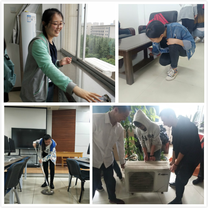 首先,1702班班长陈慧洁对此次活动进行了简单的介绍。她表示,举办此次活动的目的在于让同学们在劳动的过程中互帮互助,体会劳动的辛苦与快乐,呼吁同学们对学院有更多的关心和爱护。其次,陈慧洁将两个班的同学分成6个小组,各个小组领取清洁用具前去不同的学院办公室打扫。同学们在打扫过程中认真负责,相互帮助。例如,以贾白为组长的小组成员均为男生,他们承担了最为辛苦的清扫任务,但是毫无怨言。在清扫过程中通常需要搬运一些重物,他们这时便会主动地帮助别人,几个人在一起以合作的方式清扫卫生。合作不仅仅可以帮助同学们更快更好的完成扫除任务,在过程中大家的心也逐渐靠拢,同学们面带微笑,气氛十分和谐美好。