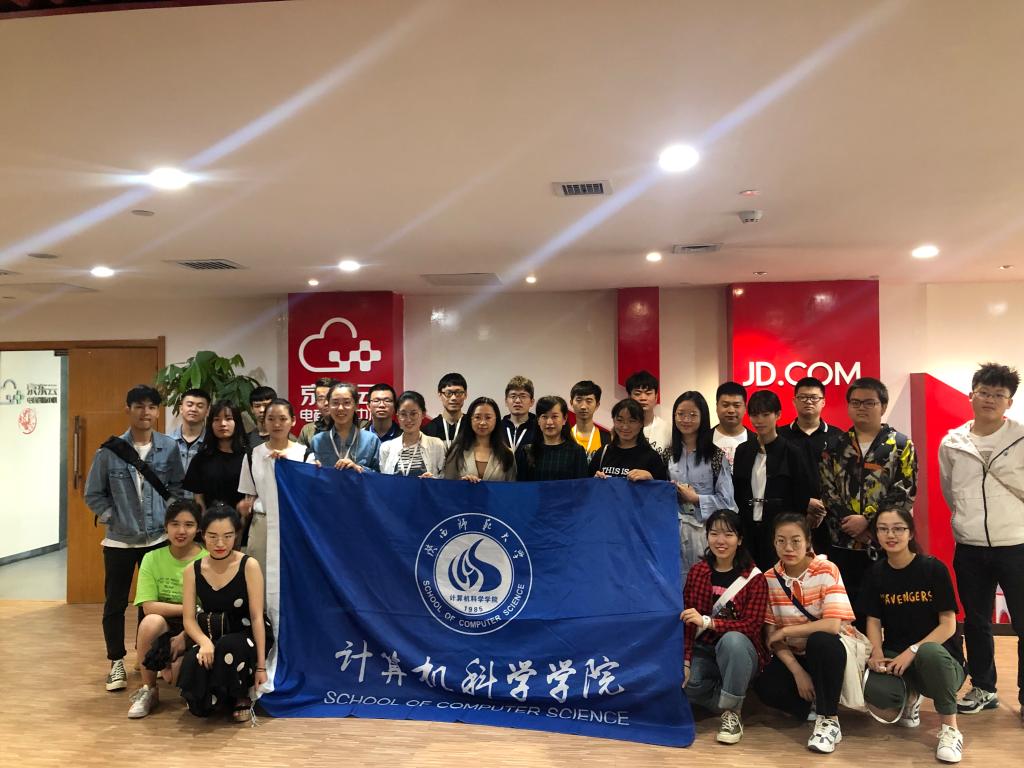 上午9时,在软通动力HR吕游的导引下,师生有序参观了腾讯双创空间和京东云电商创新中心,由相关工作人员介绍其功能和已经入驻的企业,讲解了国家对大学生创新创业的支持政策,增强了同学们对于创新创业的了解。接着,大家参观萨摩尔机器人场地,了解送餐机器人的工作原理,更是在现场与机器人进行互动,激起了同学们对学习人工智能的浓厚兴趣。