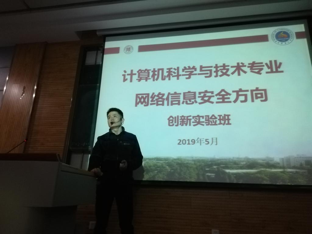 网络信息安全方向负责人胡曦明老师重点讲解了专业特色,“课、训、证、赛、创”的特色教学吸引人心;胡老师以大量的图片资料介绍相关内容,分析学科优势,对比考研与就业的不同发展前景,让同学们全方位地了解这个专业,做到心中有数。