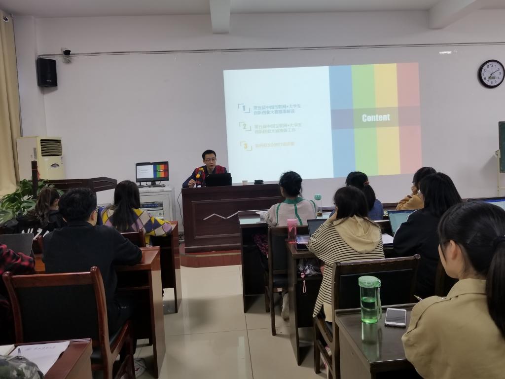 学生做互联网+大学生创新创业大赛赛事解读。解读会由2017级本科生辅导员陈应权主持,爱爱视频