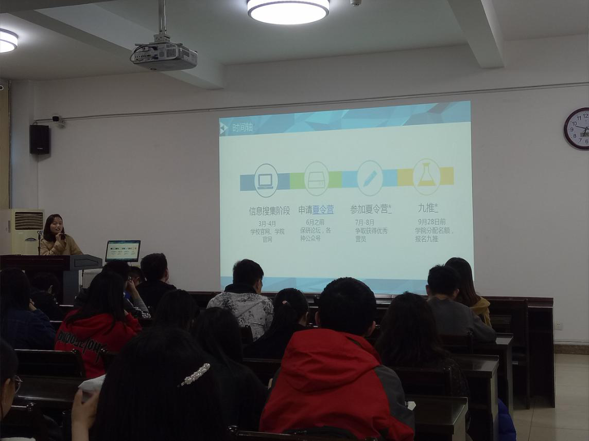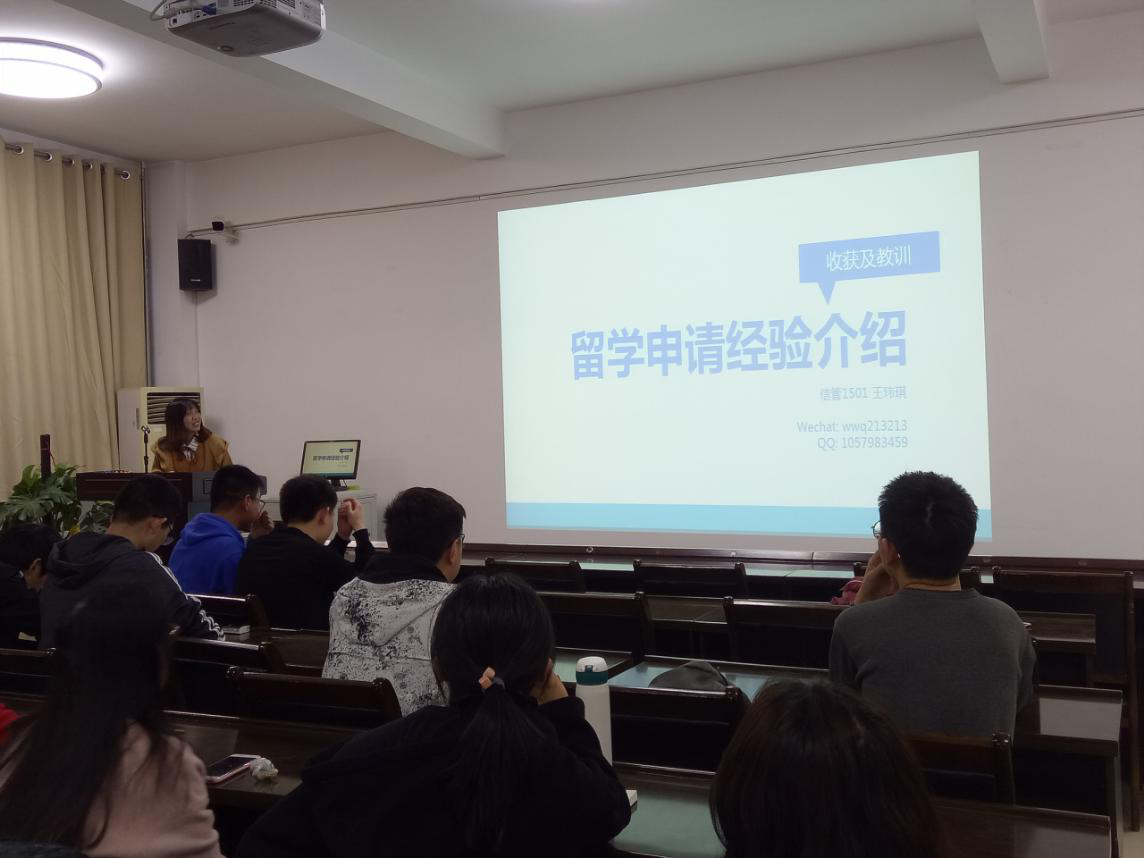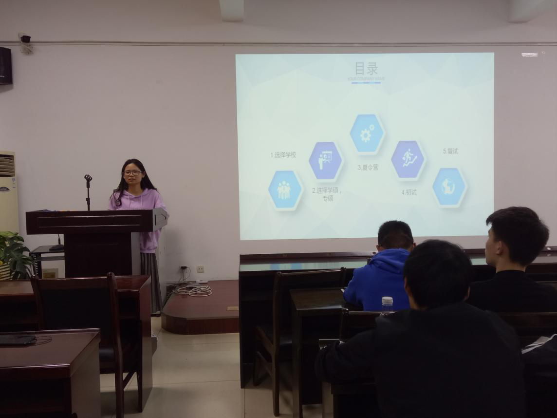 他们当中有获得国家奖学金的优秀学生,有学生会社团主要干部。他们分别向同学们详细地展示了各自在大三时期的考研经验、学术科研、求职经历或者为出国留学所做的准备等。