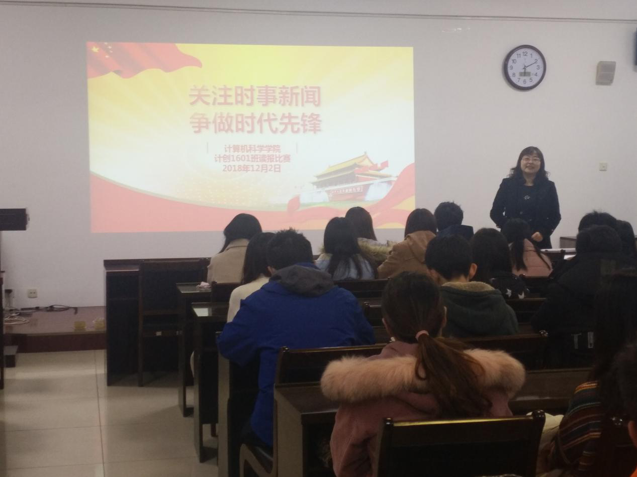 2016级计创班组织的团日活动“关注时事新闻,争做时代先锋”在长安校区文津楼学院报告厅成功举办。辅导员郭康凌主持了此活动,2016级计创班全体学生参加了该活动。