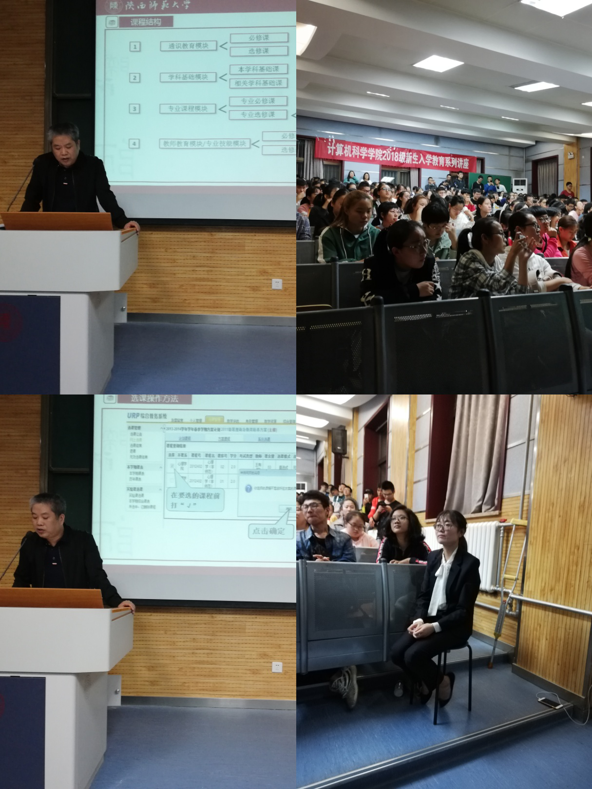 于9月26日晚19点在教学五楼5104教室召开2018级新生第四场入学教育系列讲座,特邀请本科生教学秘书朱炜主讲。本次讲座由2018级辅导员安琪主持。
