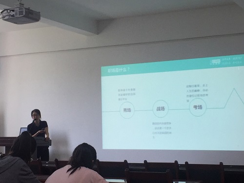 在学术报告厅开展了非师范就业指导课,本次讲座的主题为“华丽的转身——职场达人秘籍”,主讲人为中软国际科技服务有限公司的HRBP刘汉芳,辅导员吉晨晓及2015级非师范全体学生参加了本次讲座。