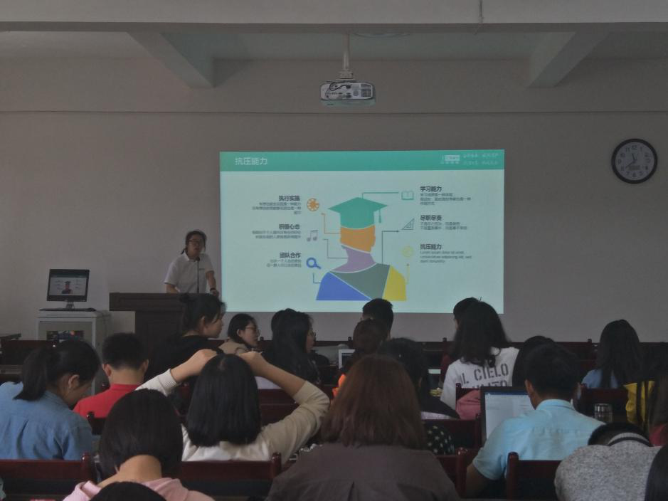 在学术报告厅开展了非师范就业指导课,本次讲座的主题为“企业的用人标准”,主讲人为中软国际科技服务有限公司的HRBP刘倩,辅导员吉晨晓及2015级非师范全体学生参加了本次讲座。