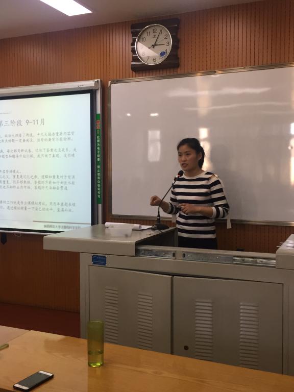 第二位主讲人是2014级信息管理与信息系统的花敏同学,现已被中国人民大学公共管理专业录取。花敏主要向同学们分享了考研经验,她讲了她考研路上三个阶段的历程以及考研期间心态的调整问题。在整个演讲过程中气氛十分热烈,同学们都被她演讲时的激昂和考研时的满腔热血所感染。