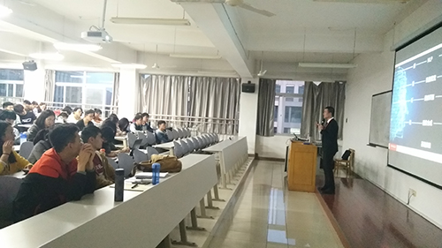 本次讲座主要分为三个部分:人工智能的前沿应用,人工智能的技术架构和大学生生涯规划。讲座开始,吴松老师通过“阿尔法狗”和“小度”等人工智能应用的例子引入主题。关于人工智能的前沿应用,吴松老师介绍的有:索菲亚(历史上首个获得公民身份的机器人)、京东无人仓库、亚马逊无人机派送快递等。这些前沿应用向同学们生动地展示了人工智能的发展。随后,在人工智能的技术框架部分,吴松老师介绍了四部分内容:模式识别、知识工程、自动工程和人机对弈。就知识工程中的新闻撰稿,吴老师提到,现在百度上许多文章都是机器生成,而非撰稿人编辑得到的,人工智能编写新闻,好处在于具有时效性,可以在很短的时间里,编写出易于理解的新闻。最后,吴老师对以后想要从事人工智能的同学进行了生涯规划,他建议,数学功底较好的同学可以从大数据分析方向进行研究,而数学一般的同学可以从Python入手。