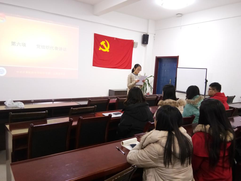 1月3日晚,学院学生第二党支部在学院报告厅举行预备党员入党宣誓仪式。仪式由支部书记安琪主持,支部委员蒋欢以及八位预备党员参加了宣誓仪式。