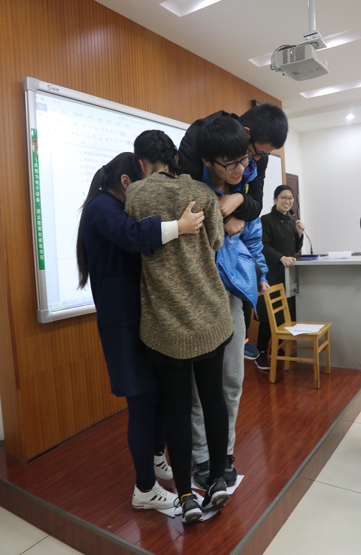 会上,同学们积极主动、互相帮助,参与了“心有千千结”、“无家可归”、“同舟共济”等多项心理小游戏,营造了轻松开放的氛围,使同学放松身心,收获好心情。拉近了同学之间的距离,增强同学之间的信任,使每位同学都能积极地融入集体。增进了同学们对团体的归属感,及团体的凝聚力。使同学们感受到了团结的力量,体会到了集体的温暖。
