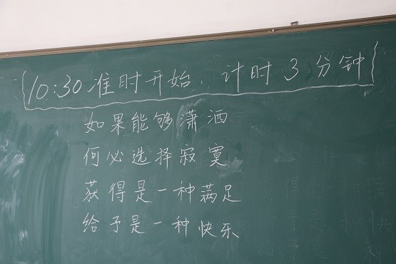 “小黑板评比”活动是由每个宿舍选出一个代表,分四轮参加比赛。参加此次比赛的男女生共有24个,以汪国真的诗文“如果能够潇洒,何必选择寂寞。获得是一种满足,给予是一种快乐。”为书写内容,进行3分钟现场粉笔字书写。