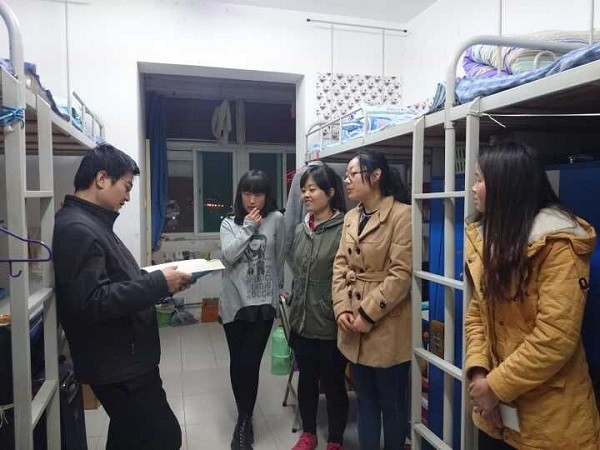 党委书记胡波带领各年级辅导员专程来到学生宿舍看望同学们。