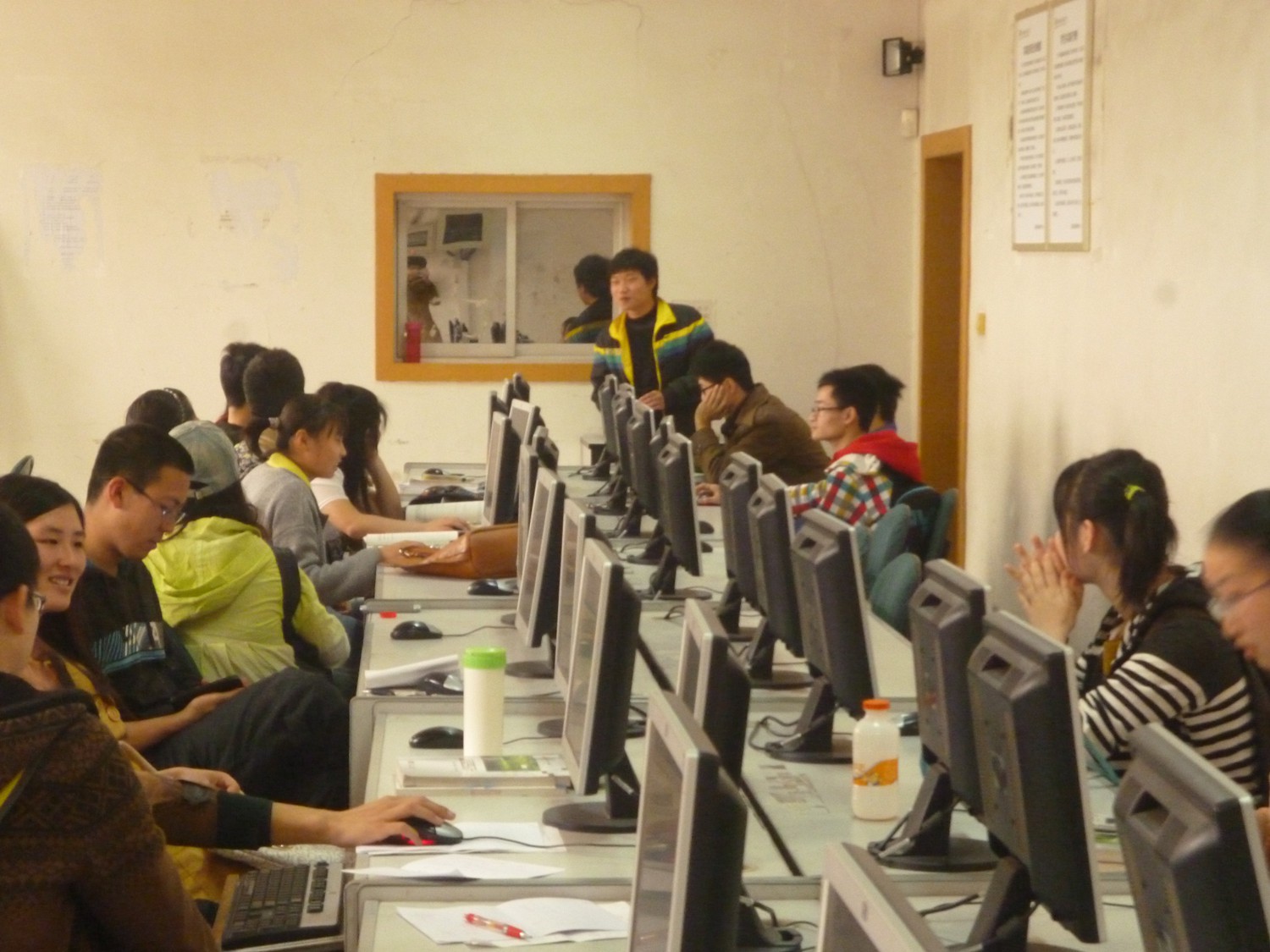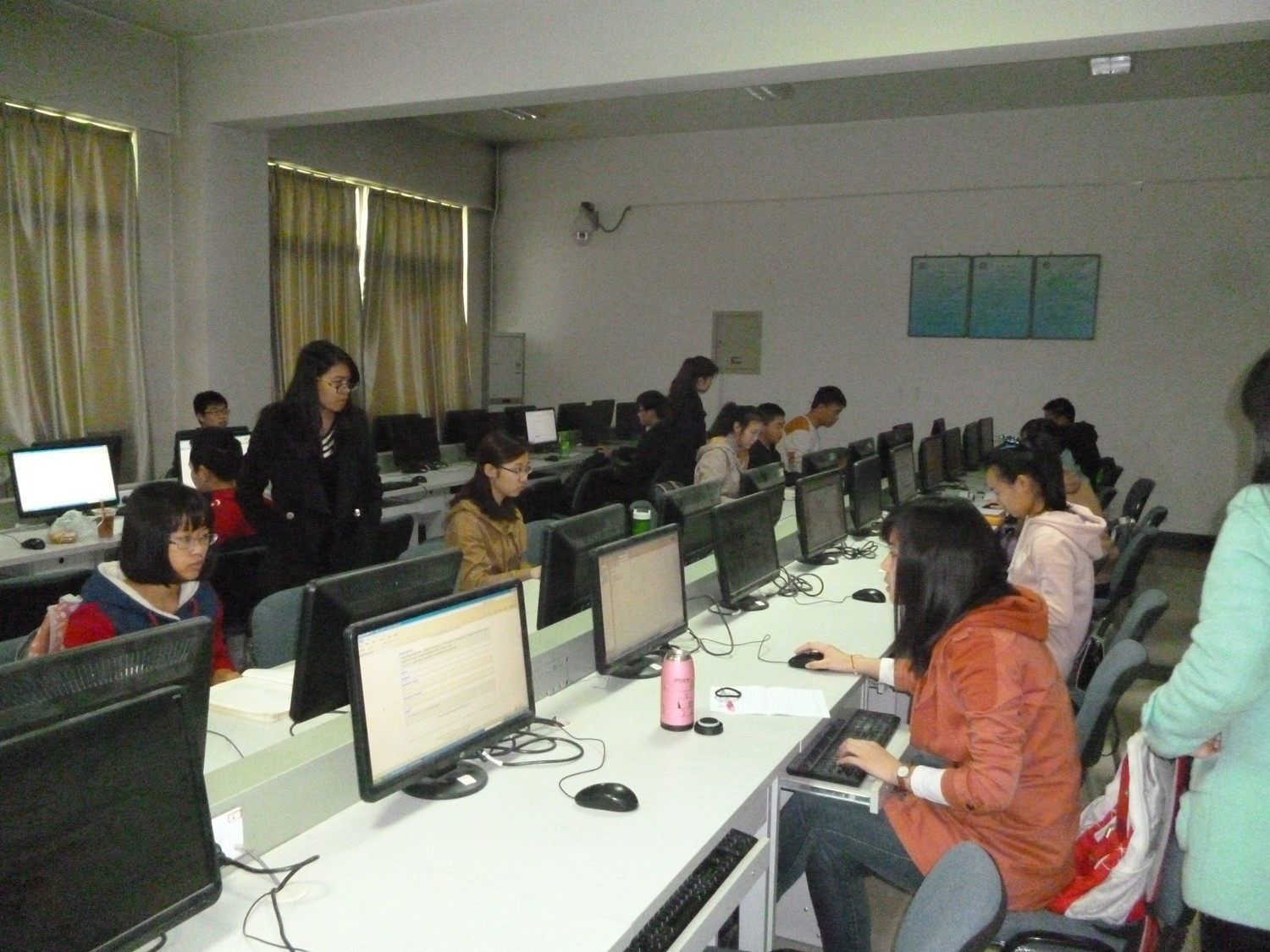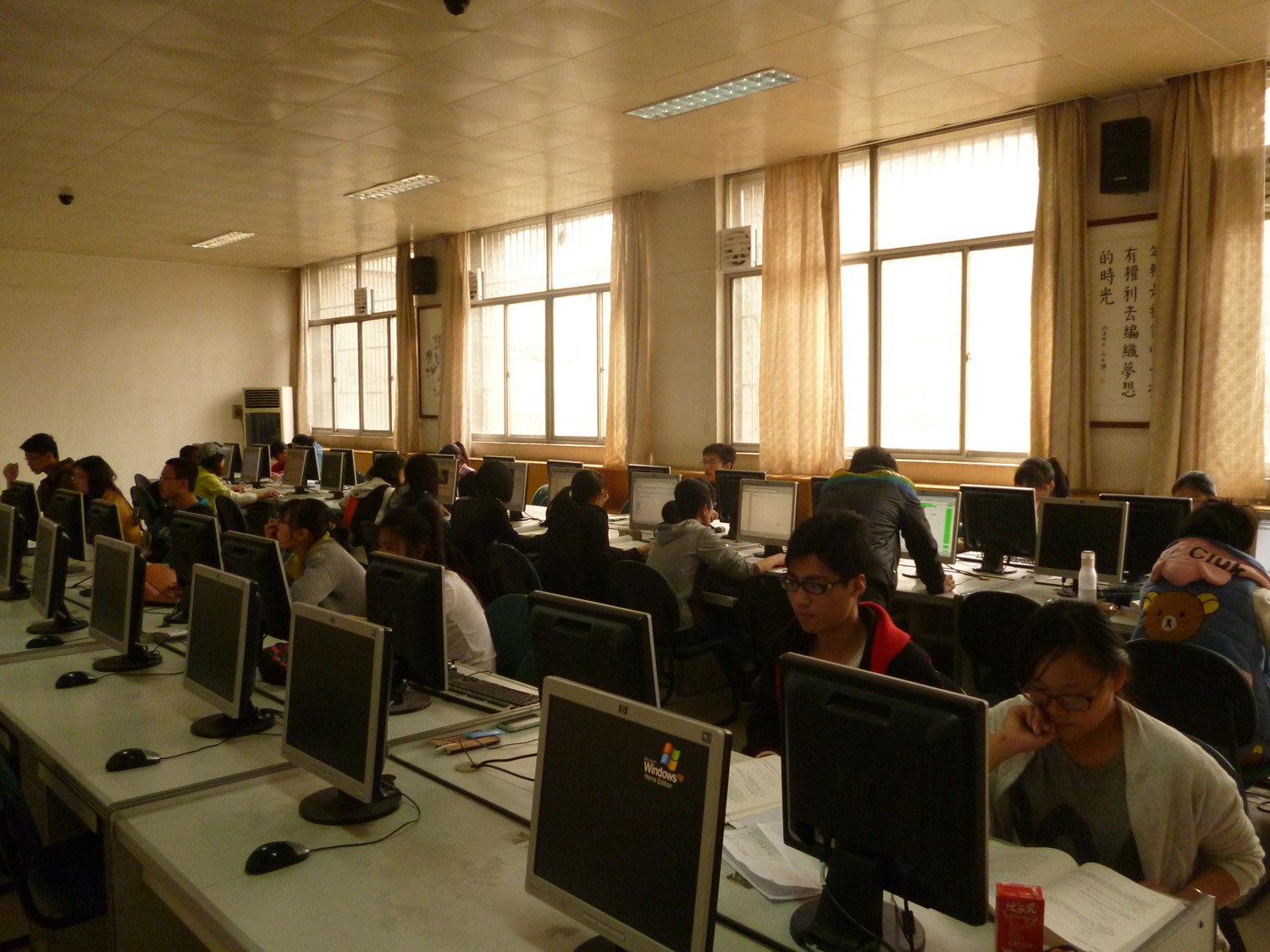 本次“快码加编”程序设计竞赛时长为2个小时30分钟。竞赛分为两个考场,长安校区的逸夫科技信息楼计算机实验室,以及雁塔校区教学三楼计算机实验室。每位参赛同学签到入场,提前进入考场熟悉测评环境。同学们的参与热情很高,聚精会神的编写程序。期间,集训队的前任队员们也来现场指导,关注竞赛情况。