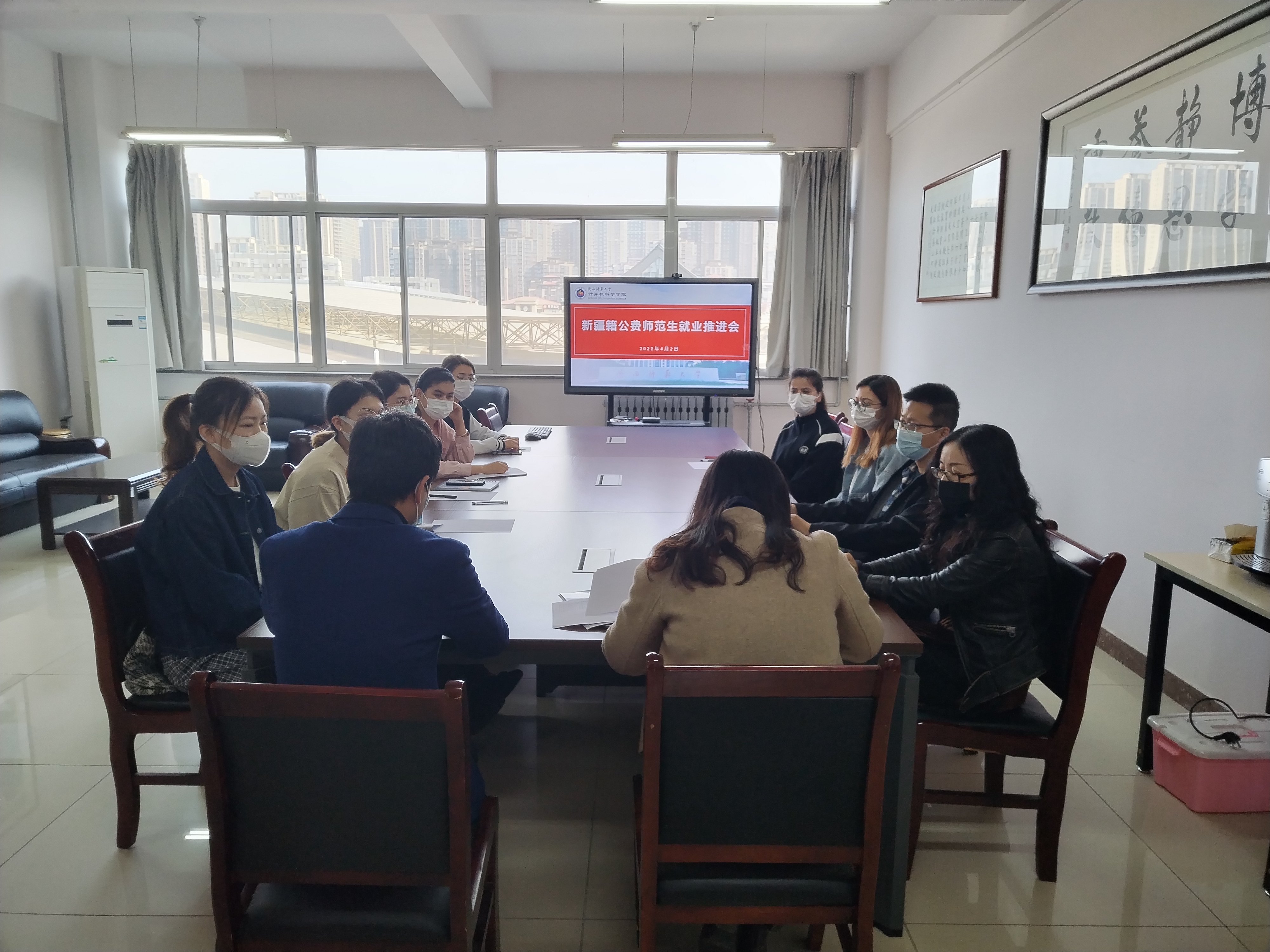 为进一步帮助2022届新疆籍公费师范生做好就业工作,4月2日上午,我院在文津楼3427会议室召开2022届新疆籍公费师范生就业推进会。学院党委副书记郭康凌老师、计算机科学与技术专业班主任邵仲世老师、教师普适计算党支部组织委员张玉梅教授、7名新疆籍公费师范生参加会议,会议由毕业班辅导员田海东主持。