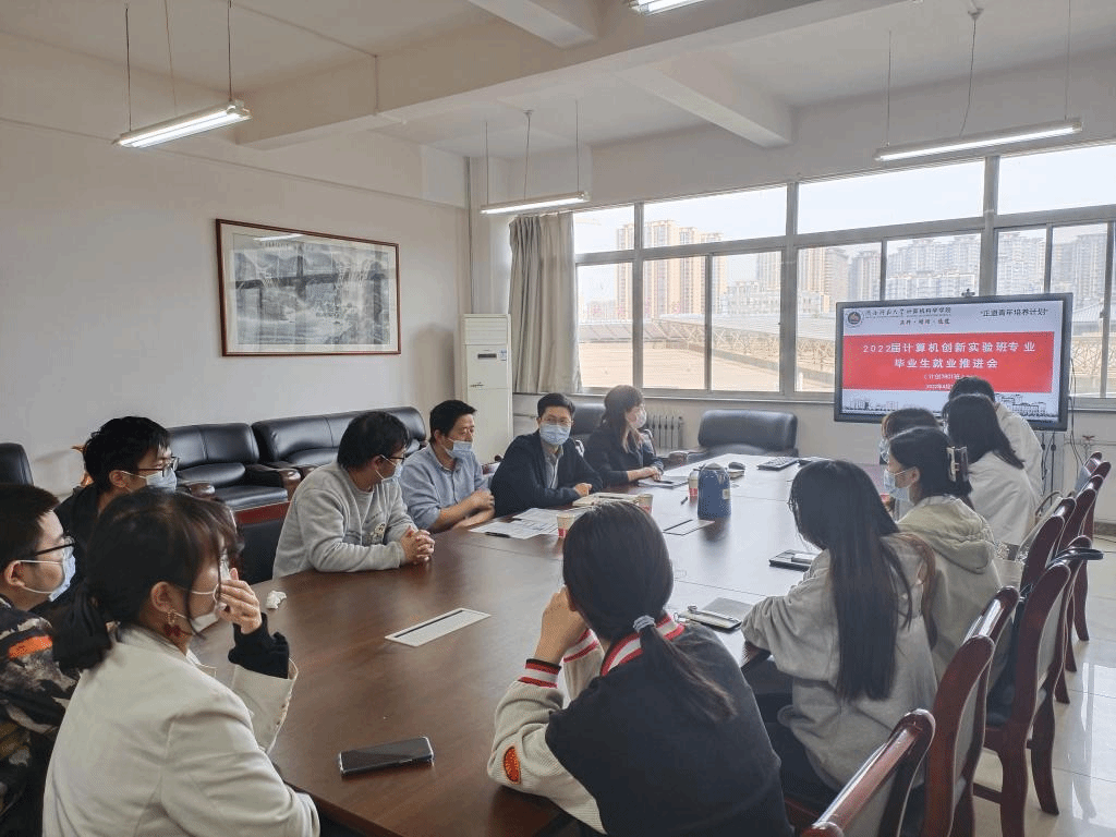 4月13日上午,我院在文津楼3427会议室召开2022届计算机科学与技术创新实验1801班毕业生就业工作推进会。学院李鹏副院长、程适副教授和12名未就业学生参会,会议由学院党委副书记郭康凌主持。