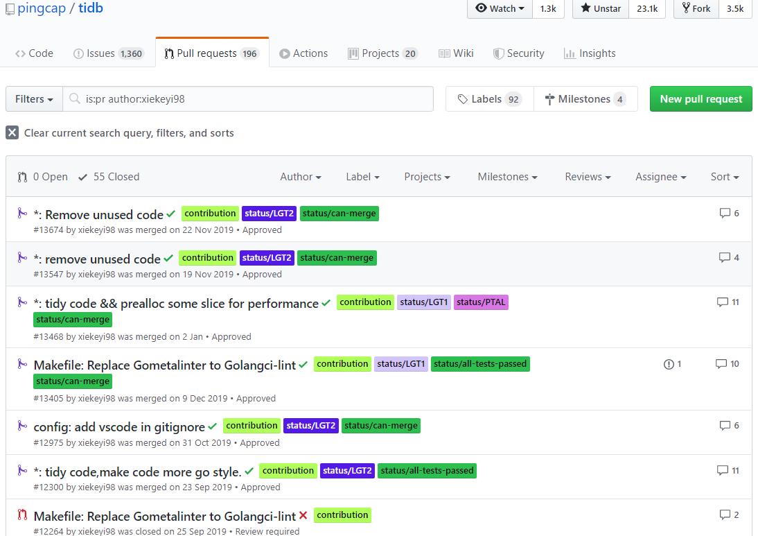 最终拿到了扇贝和 PingCAP的 offer,入职了 PingCAP。PingCAP 主营 TiDB,一款开源在 Github 上的数据库。在这个过程中,熟练了Git 的用法,并了解了开源社区运作方式。PingCAP的爱爱视频也很培养人,在里面我得到了很多帮助和指导。