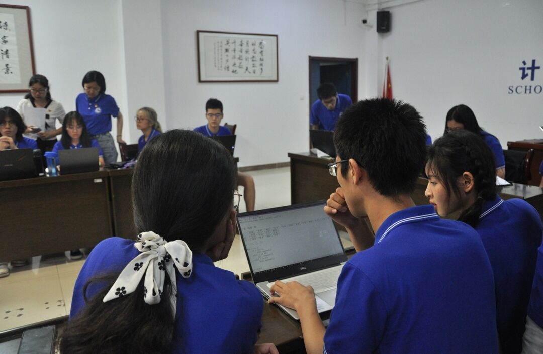 随着主持人一声令下,“学党史 编程序 展风采”比赛火热开启,在长达一个半小时的脑力飞速运转中,参赛组们激烈追逐,每组参赛选手们都专心致志,沉着应对,团结协作,成功组心潮澎湃,其他小组也毫不气馁,争分夺秒,充分体现计科学子团结努力,永不言弃的风采!监督员们秉承着公平、公正、公开,决不弄虚作假的态度,比赛现场紧张有序。每一题作答结束,成功组的运行成果以及具体代码会在大屏幕上显示,出题人高昊宇同志对各小组表现作出点评,大家在相互切磋中有所进步,有所收获。